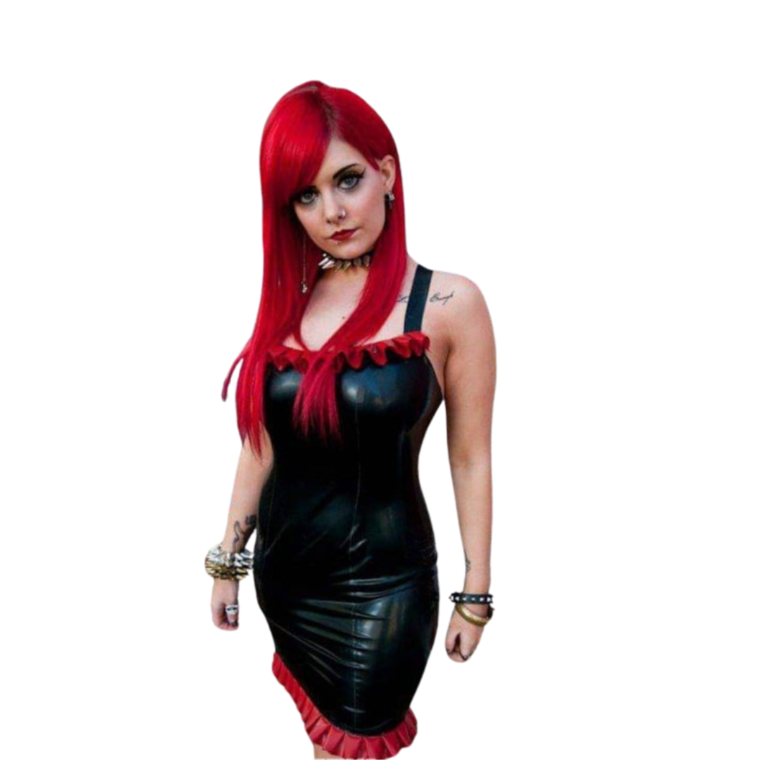 Shake things up with our Frill Trim Sleeveless Dress! Made from 0.4 mm thickness latex, this mid thigh length dress is sure to turn heads. Choose your favourite colour for the bustline and hem frills, while the wide straps match the main dress colour.