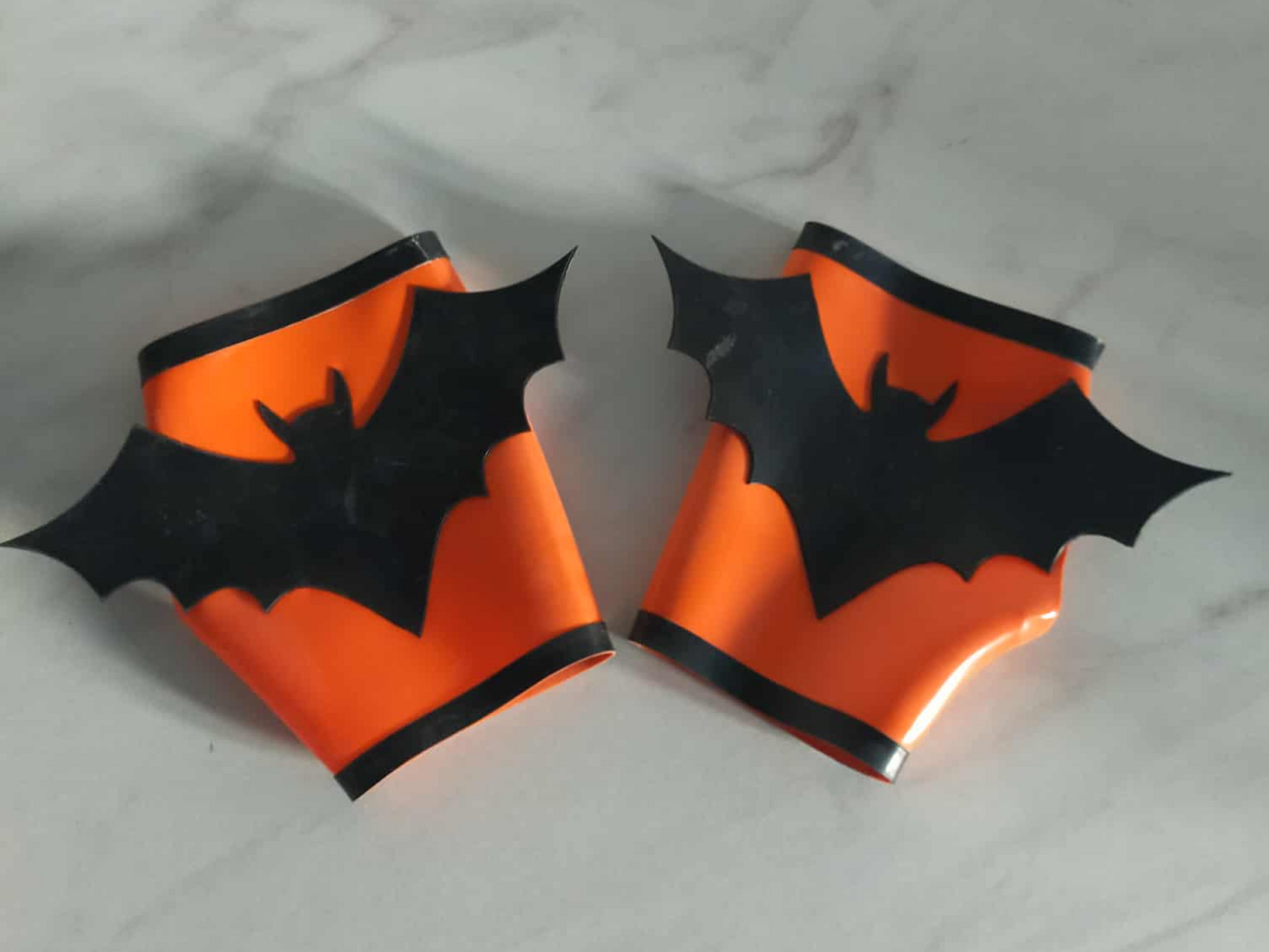 The bat is glued on the back of the gauntlets, therefore the wings flap around.