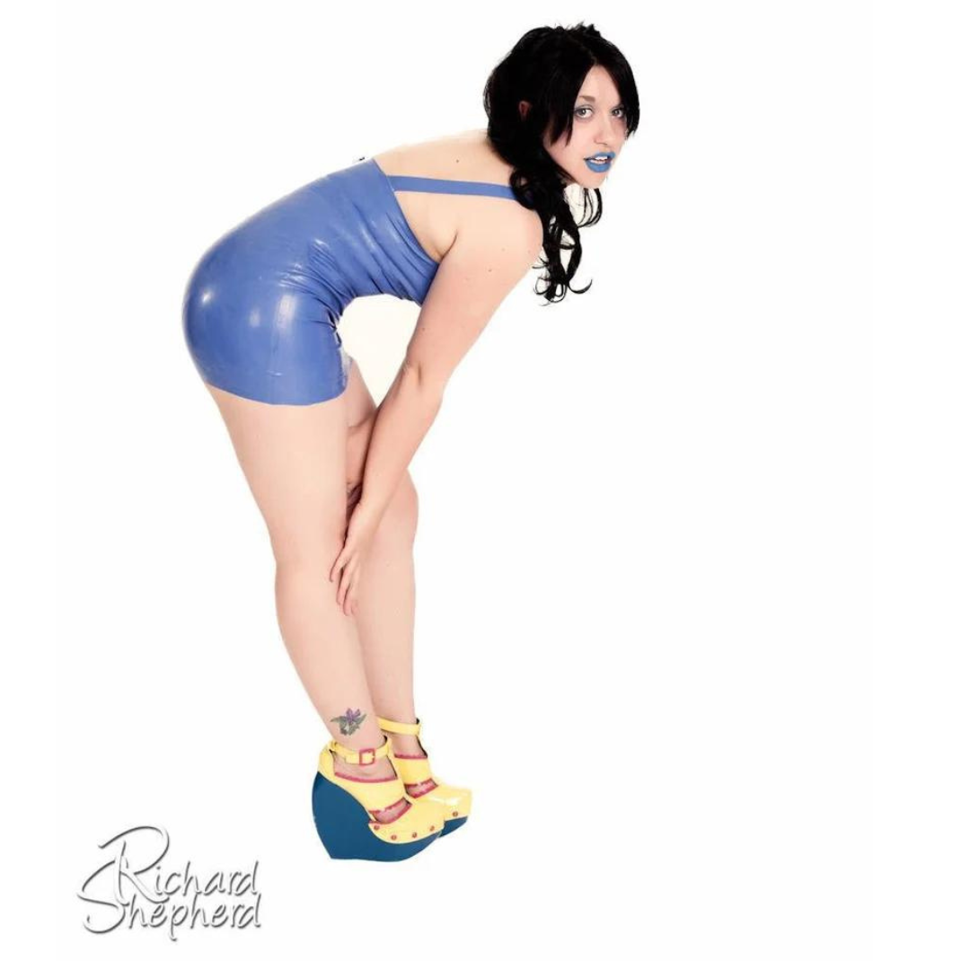 Get ready to turn heads with our thigh-skimming latex mini dress. Made from high-quality 0.4mm latex, this sleeveless scoop neck dress is perfect for beginners or for adding to your rubber collection. Choose from a variety of colours to suit your style.