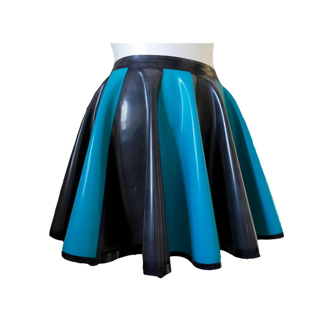 Get ready to make a splash in our Latex Sunray Skirt! This hand made, 0.4 mm latex skirt features a playful sunray design in two tones, perfect for adding some fun to your wardrobe. Flirty and versatile, this skater skirt is sure to turn heads.