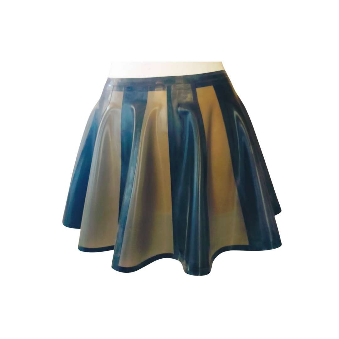 Introducing our Short Latex Sunray Skirt. This handmade skirt features panels of black and your choice of colour, perfect for adding a pop of personality to your outfit. With a cheeky 12 inch drop from the waist and trimmed with black, this skirt is sure to turn heads. Made from 0.4mm thick latex.