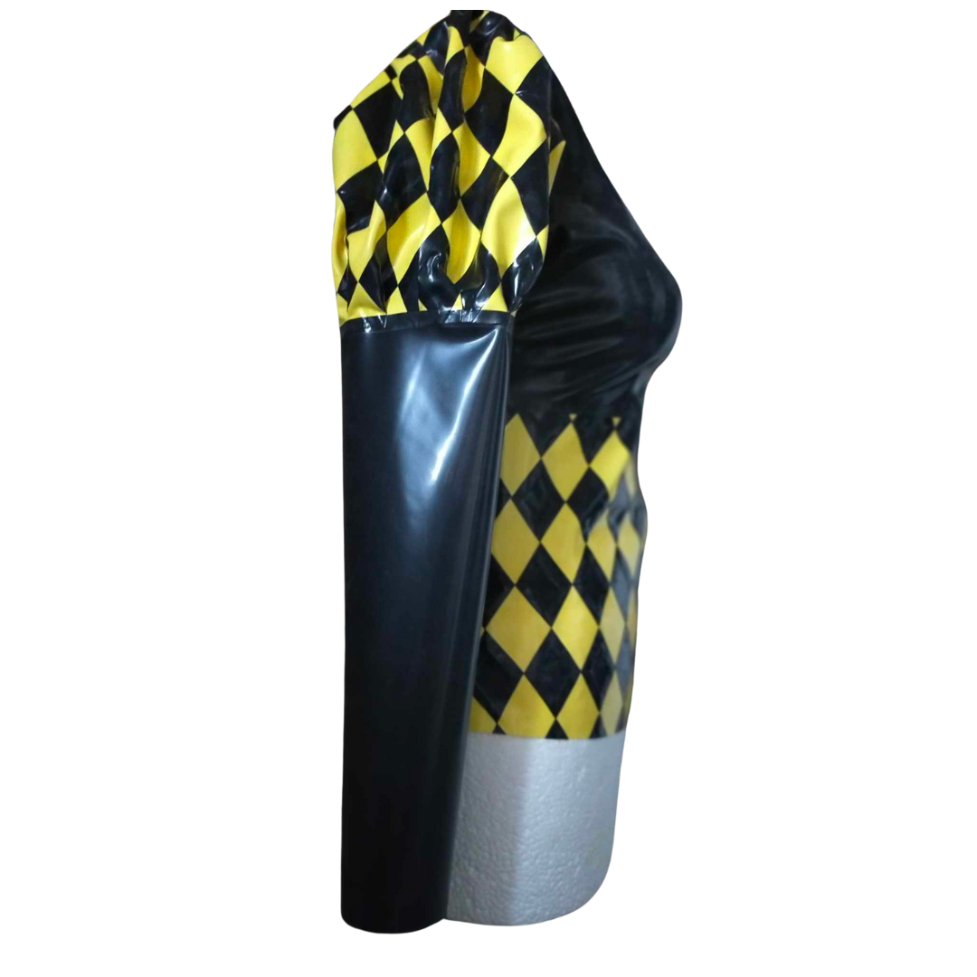 Get ready to stand out in the Two Tone Diamond Jacket! This amazing jacket features a black back panel and diamond panels on the sleeves and torso. Made from 0.4mm thickness latex with a silver zipper, the long puff sleeves add some serious drama. Choose your main colour to complete the look.